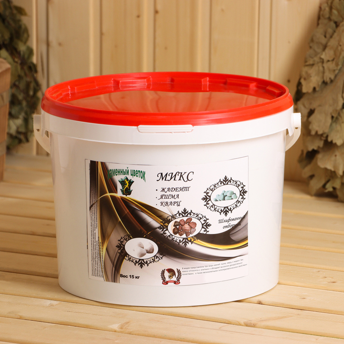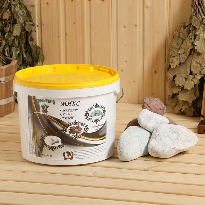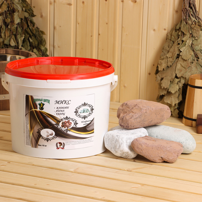 Камень для бани "Смесь" жадеит, яшма, кварц, ведро 15 кг, фракция 70-120 мм