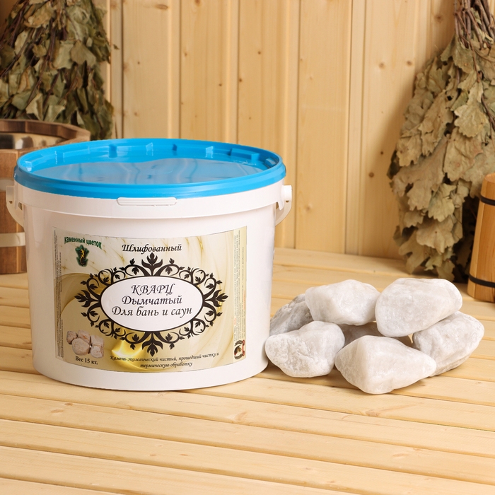 Камень для бани "Кварц дымчатый" галтованный, ведро 15 кг, фракция 70-120 мм