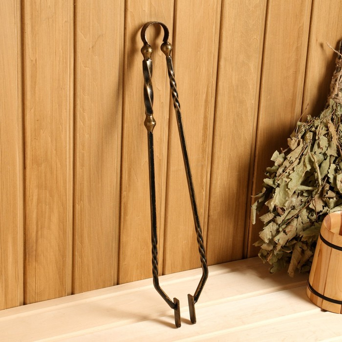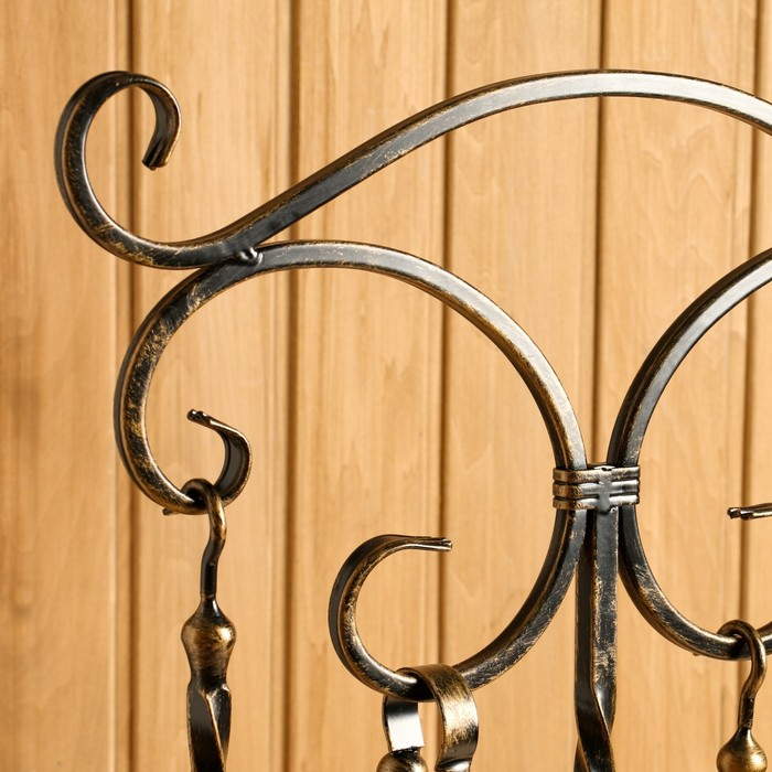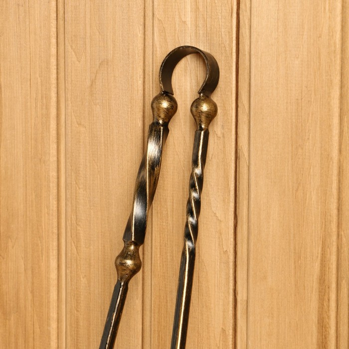 Каминный набор КН-6-2 кованый, цвет бронза, 4 предмета: кочерга, щипцы, совок, метёлка