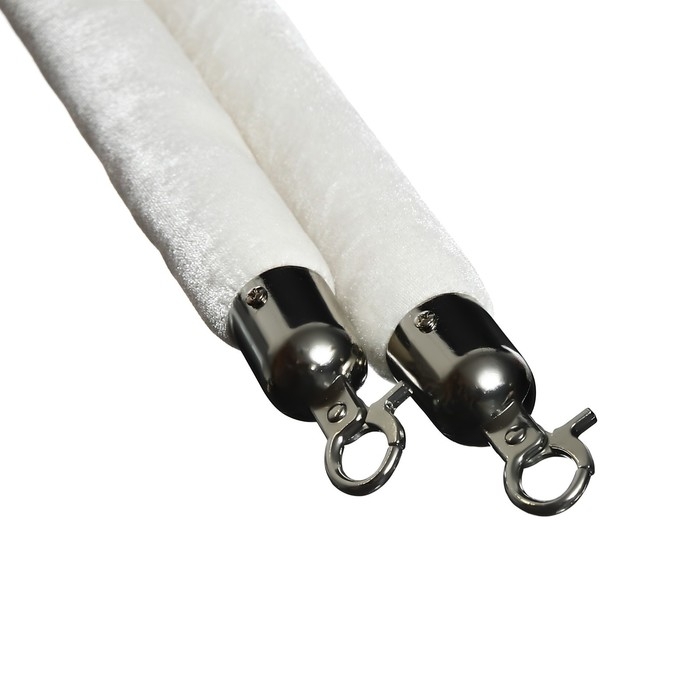 Канат бархатный оградительный, cеребряный наконечник -1,5м, белый