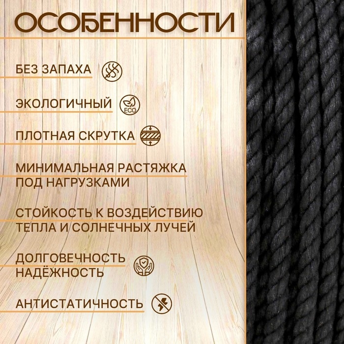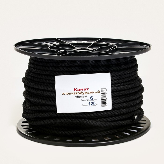 Канат хлопчатобумажный 6 мм (120 м) черный