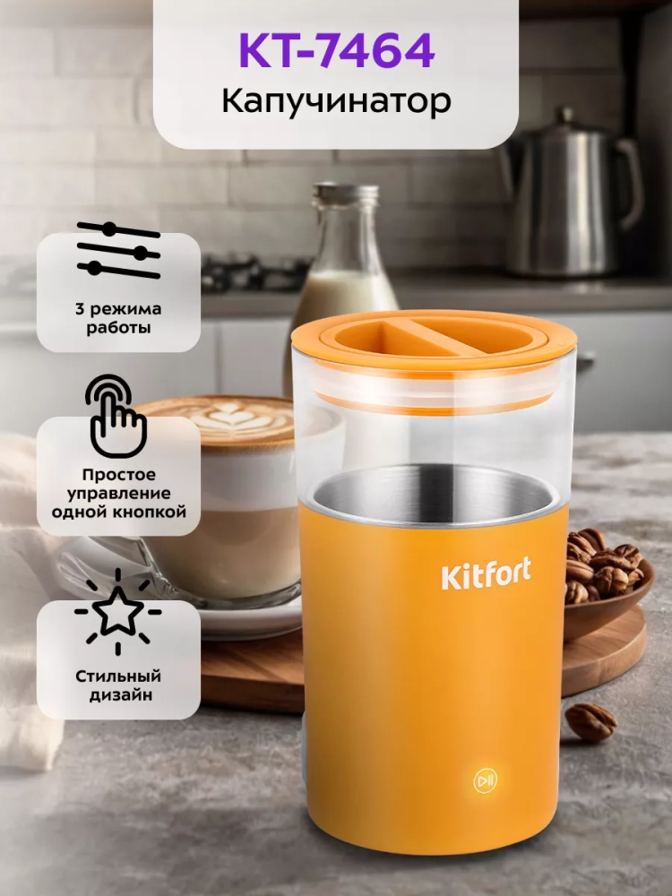 Капучинатор Kitfort КТ-7464 — это устройство для приготовления молочной пенки, используемой для напитков на базе эспрессо: капучино, латте и латте макиато. Прибор работает в трех режимах: вспенивание с подогревом, смешивание с подогревом и вспенивание без подогрева.