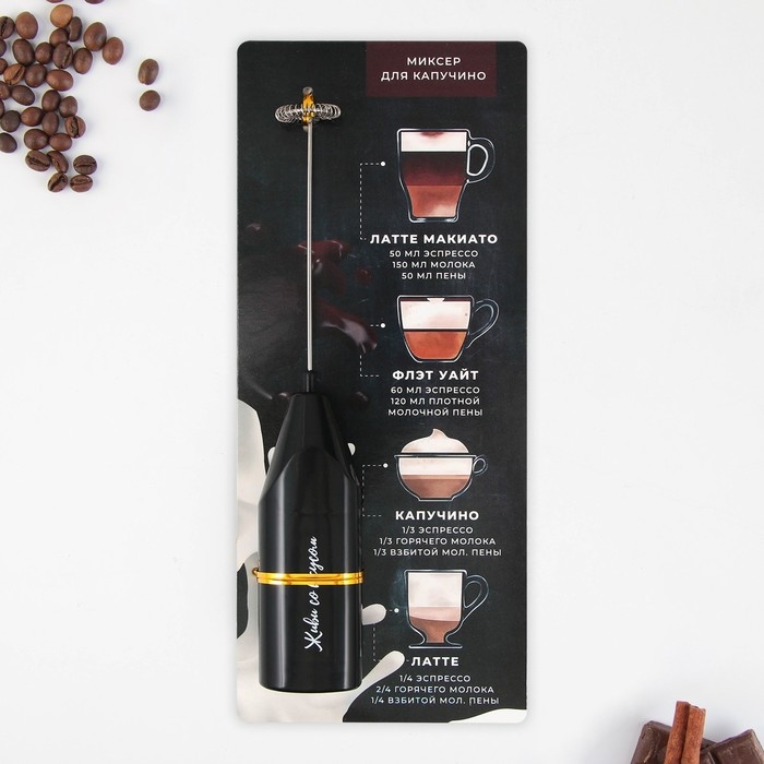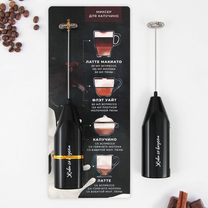 Для тех, чье утро не начинается без кофе. Капучино, латте, раф, флэт-уайт? Легко! Капучинатор – это легкий и компактный девайс, который удобно взять с собой. Он быстро и легко взбивает молоко и сливки до плотной и упругой пены, работает от двух батареек типа АА и не занимает много места.