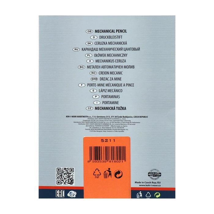 Карандаш цанговый 2.0 мм Koh-I-Noor 5211CN Versatil, металл/пластик, с клипом