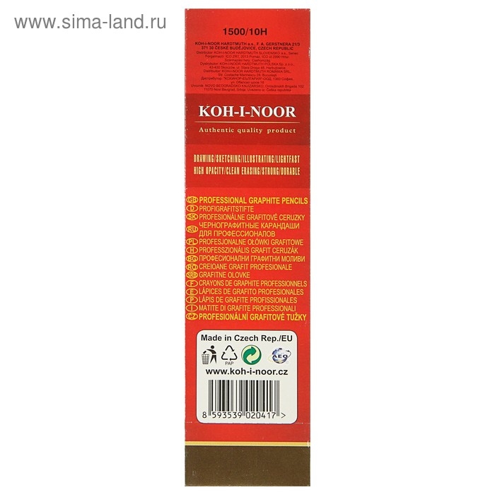 Карандаш чернографитный 2.0 мм, Koh-I-Noor 1500 10H, профессиональный, L=175 мм