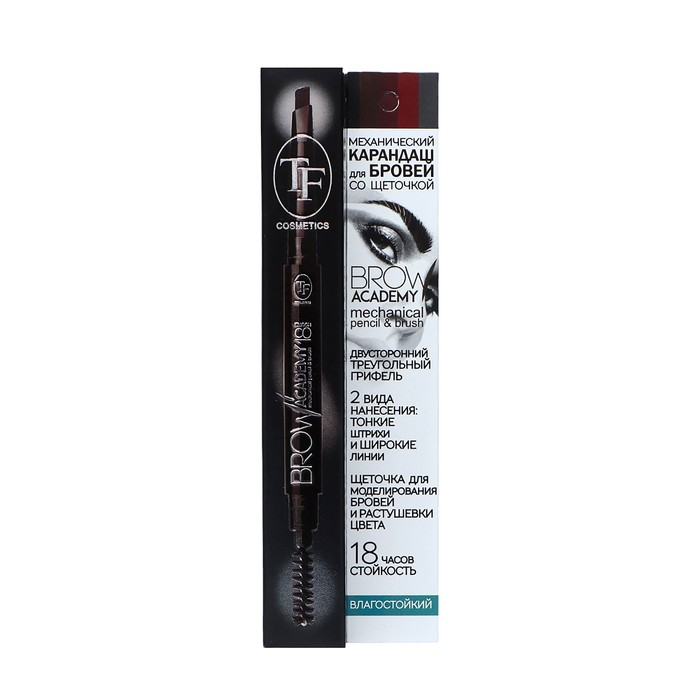 Влагостойкий профессиональный карандаш с уникальным треугольным грифелем, не требующим заточки и встроенной щеточкой, идеально подчеркивает форму бровей.