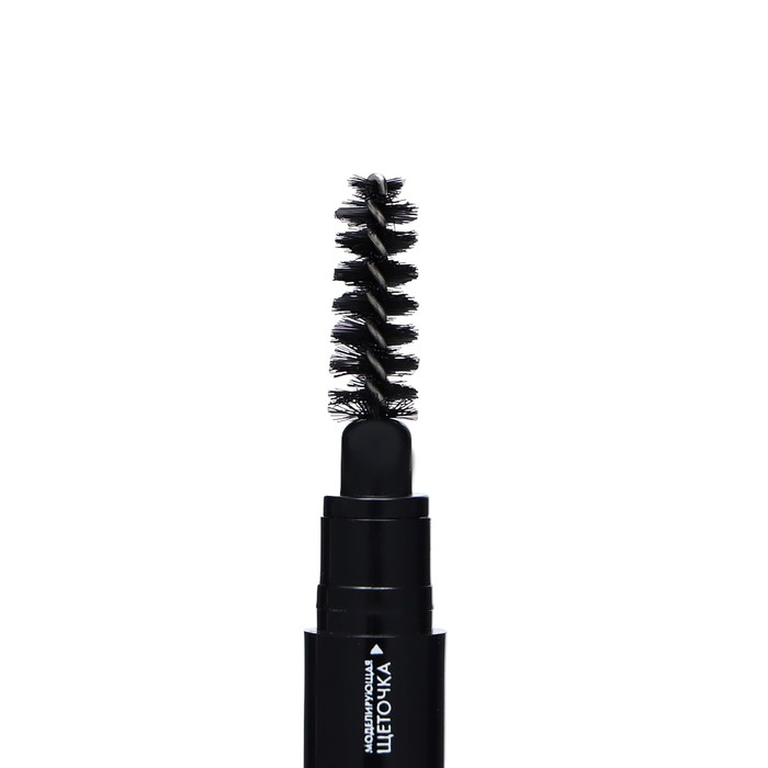 - Встроенная щеточка легко и равномерно распределяет пигмент, моделирует форму бровей, укладывая в нужном направлении, даже самые непослушные волоски и фиксирует их.