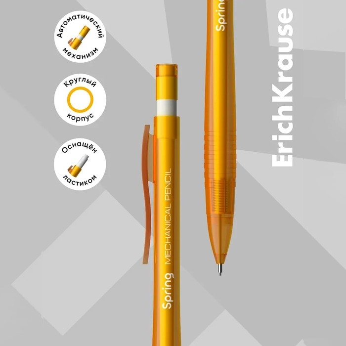 Карандаш механический с ластиком ErichKrause "Spring", НВ, грифель d=0.7 мм, в коробке, микс