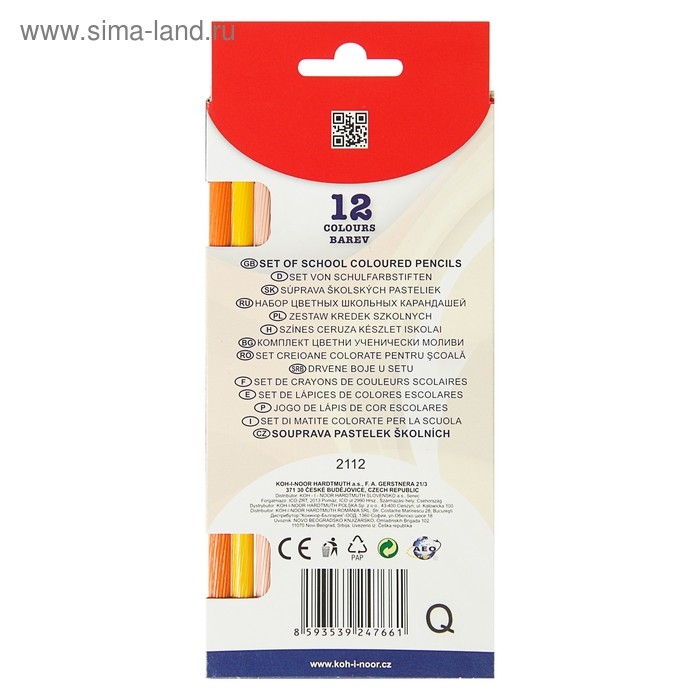 Карандаши 12 цветов Koh-I-Noor 2112, рифлёная поверхность, картонная упаковка, европодвес