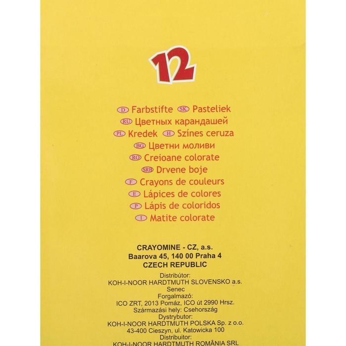 Карандаши 12 цветов Koh-I-Noor 2142 "Центы", картонная упаковка, европодвес