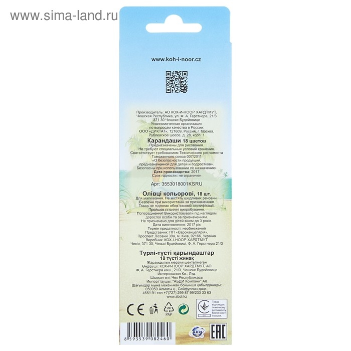 Карандаши 18 цветов Koh-I-Noor 3553, Птицы