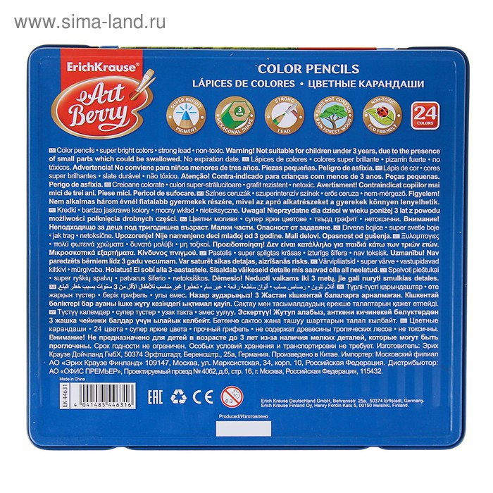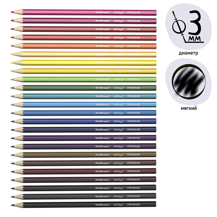 Карандаши 24 цвета ErichKrause ArtBerry премиум, дерево, шестигранные, яркий и мягкий грифель 3.0 мм, металлическая коробка