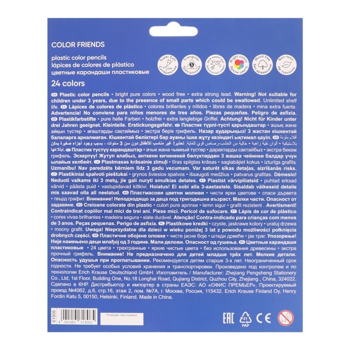 Карандаши 24 цвета ErichKrause "Color Friends", пластик, трехгранные, европодвес