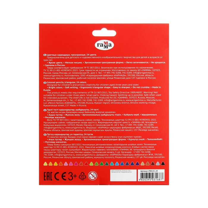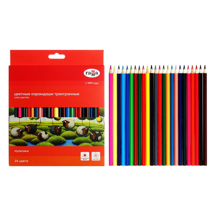 Карандаши 24 цвета "Гамма" "Мультики", стержень d=2.6 мм, трёхгранные