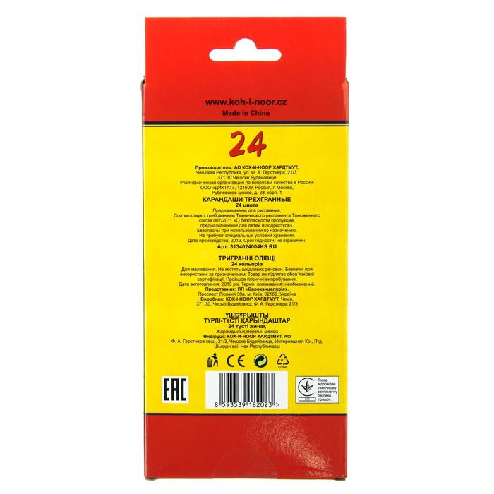 Карандаши 24 цвета, Koh-I-Noor 3134 TRIOCOLOR, картонная упаковка, европодвес