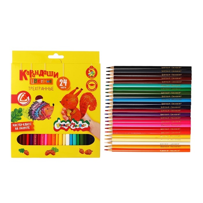 Карандаши 24 цветов "Каляка-Маляка", трехгранные, деревянный корпус