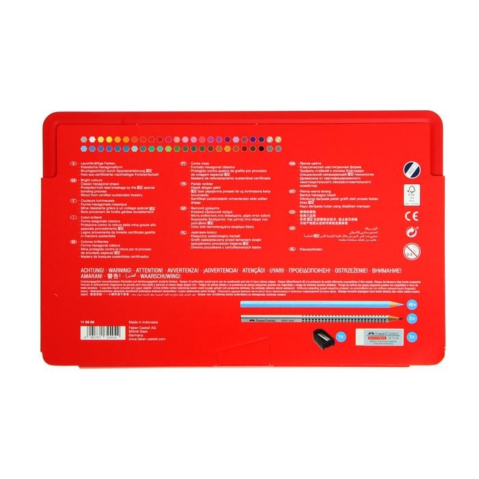 Карандаши 48 цвета Faber-Castell "Замок", трёхгранный корпус, 2 чернографитных карандаша , с ластиком, в металлическом пенале