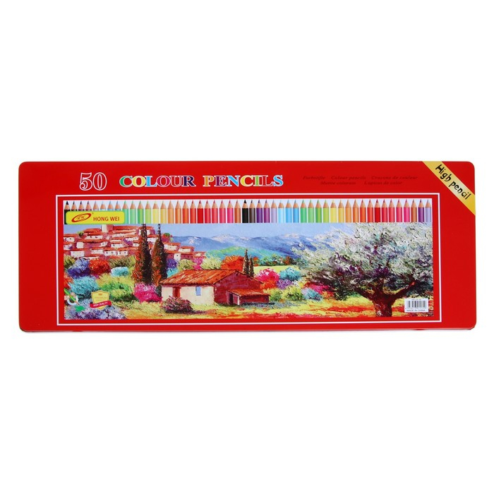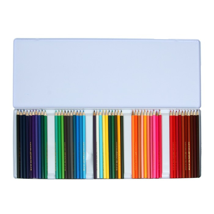 Карандаши 50 цветов, в металлическом пенале, корпус шестигранный, заточенные