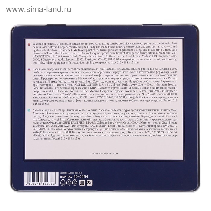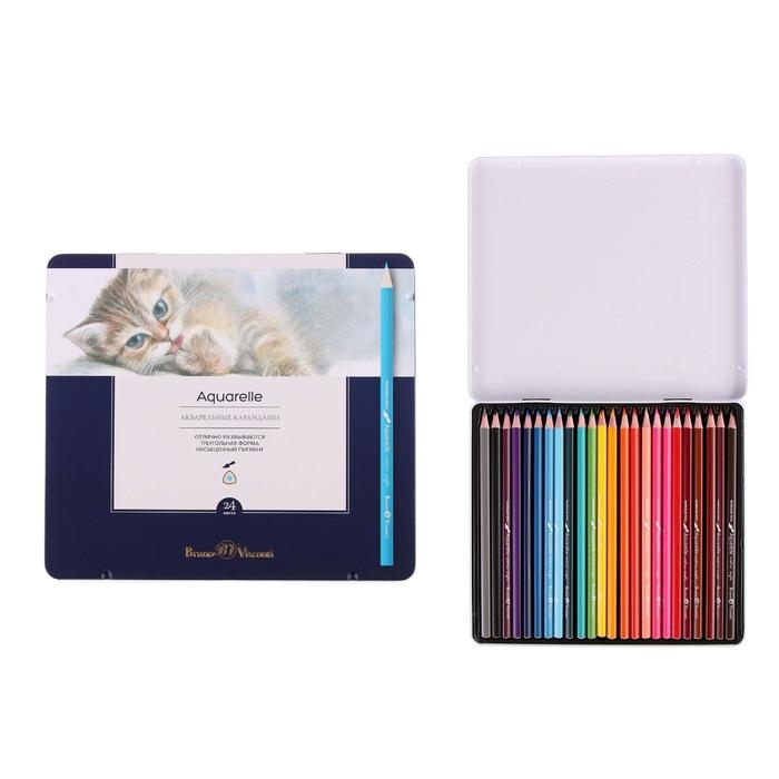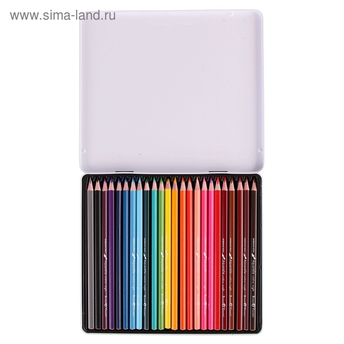 Карандаши акварельные 24 цвета Aquarelle, в металлической коробке с ложементом