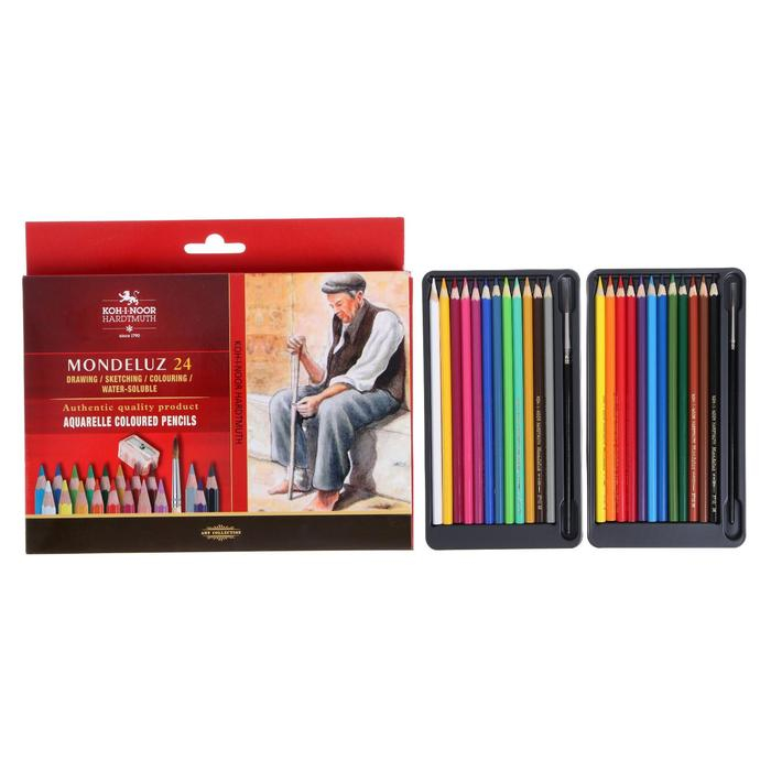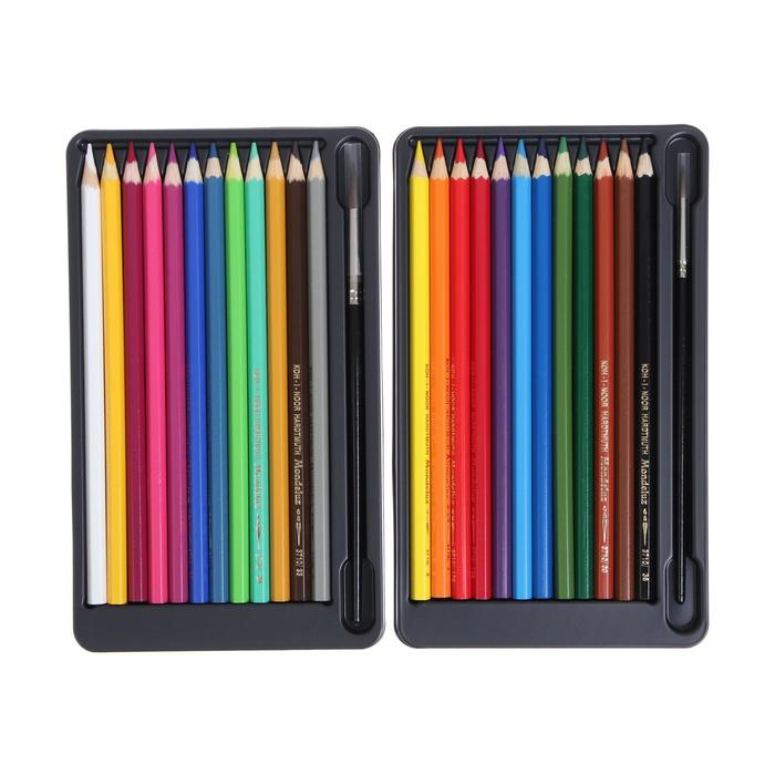 Карандаши акварельные набор 24 цвета, Koh-I-Noor Mondeluz 3711 + точилка + кисть 1 штука, картонная упаковка, европодвес