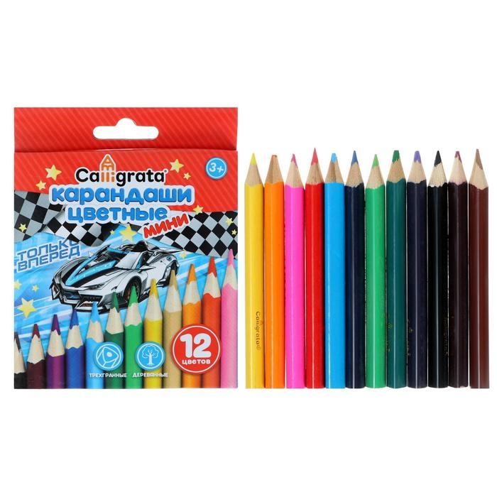 Карандаши Calligrata "Машинка", 12 цветов, МИНИ, корпус деревянный, треугольный
