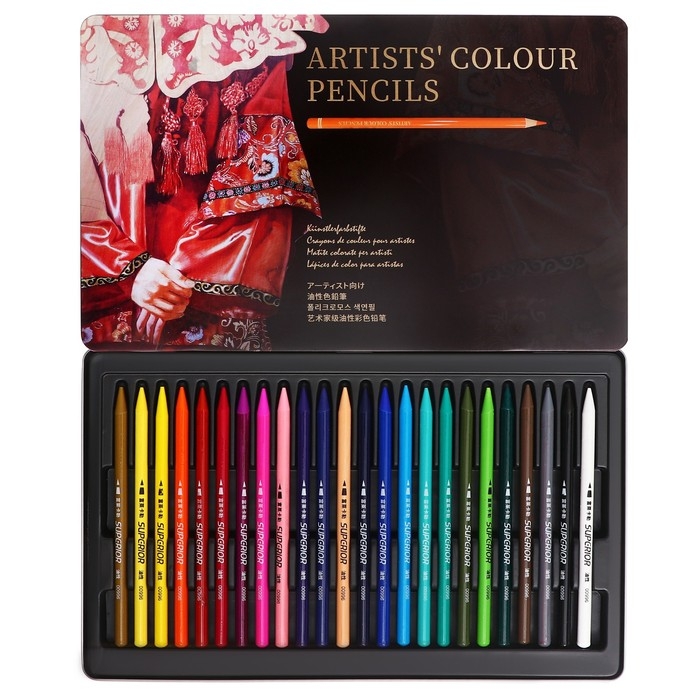 Карандаши цельнографитные, в металлической коробке, 24 цвета