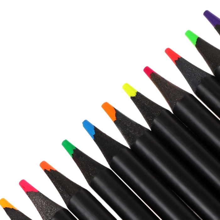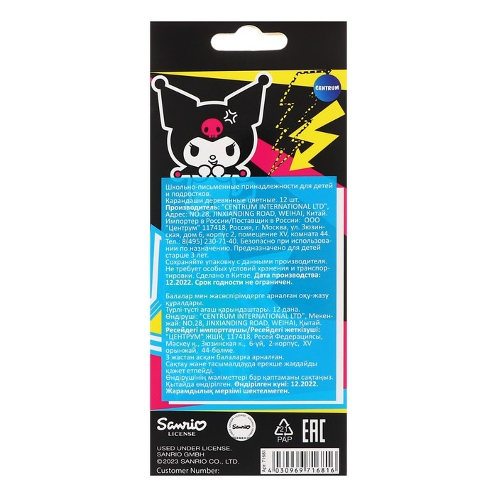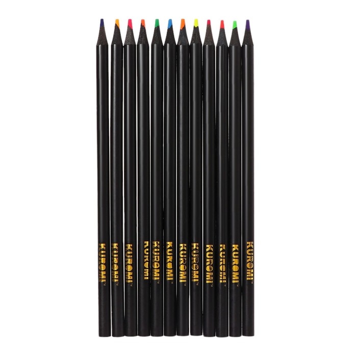 Карандаши цветные 12 цветов Kuromi, неоновые, корпус деревянный, круглый
