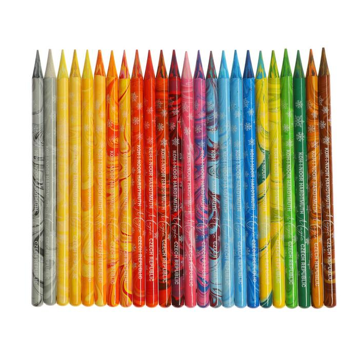 Круглые цветные карандаши, лакированные со специальным трехцветным грифелем - три оттенка цвета в одном грифеле. Карандаш создает многоцветный след, который меняется при вращении кончика карандаша. Этим карандашом можно создать неповторимую окраску больших участков на рисунке, где должны чередоваться несколько цветовых оттенков, например травы, моря и т.д. Благодаря достижению уникального цветового эффекта при использовании различных техник рисования (затенение, штриховка) полученный эффект гораздо более натуралистичен по сравнению с рисунками, созданными классическими цветными карандашами. Не забываем, что из цельнографитовых карандашей можно легко наделать цветной пудры с помощью обычной точилки.