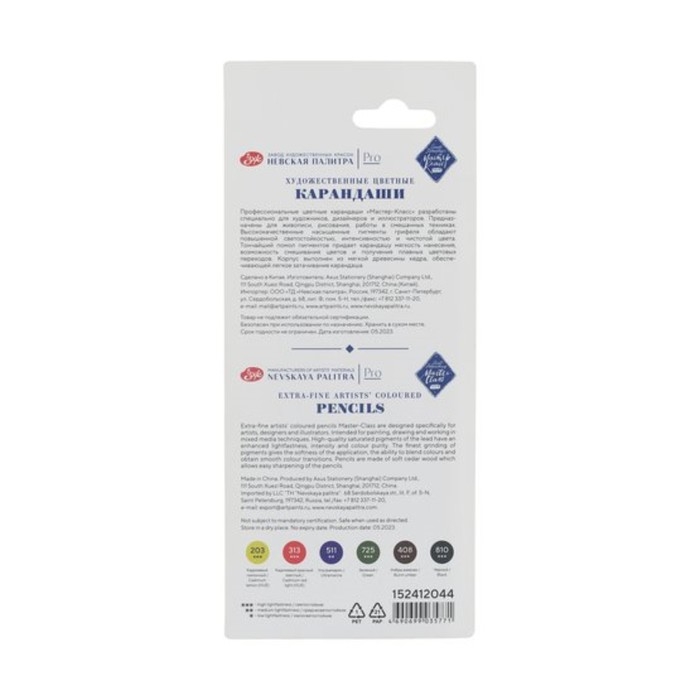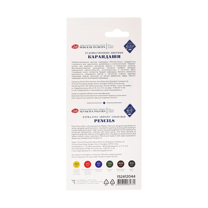 Профессиональные цветные карандаши "Мастер-Класс" разработаны специально для художников, дизайнеров и иллюстраторов. Предназначены для живописи, рисования, работы в смешанных техниках. Высококачественные насыщенные пигменты грифеля обладают повышенной светостойкостью, интенсивностью и чистотой цвета. Тончайший помол пигментов придает карандашу мягкость нанесения, возможность смешивания цветов и получения плавных цветовых переходов. Корпус выполнен из мягкой древесины кедра, обеспечивающей легкое затачивание карандаша.