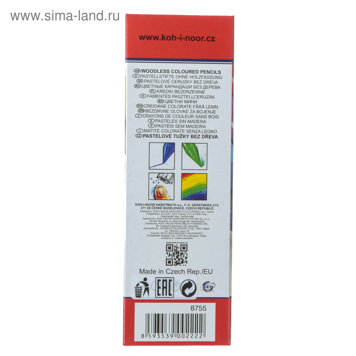 Карандаши художественные 6 цветов, Koh-I-Noor PROGRESSO 8755, цветные, цельнографитные, в картонной коробке
