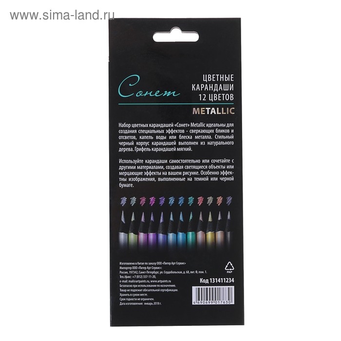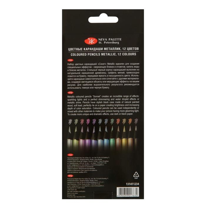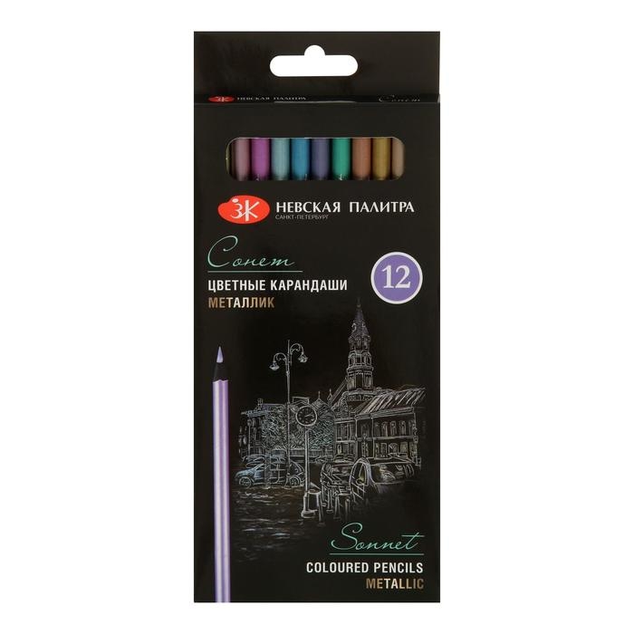 Карандаши художественные цветные, ЗХК "Сонет", Metallic, 12 цветов, металлик, для темной бумаги