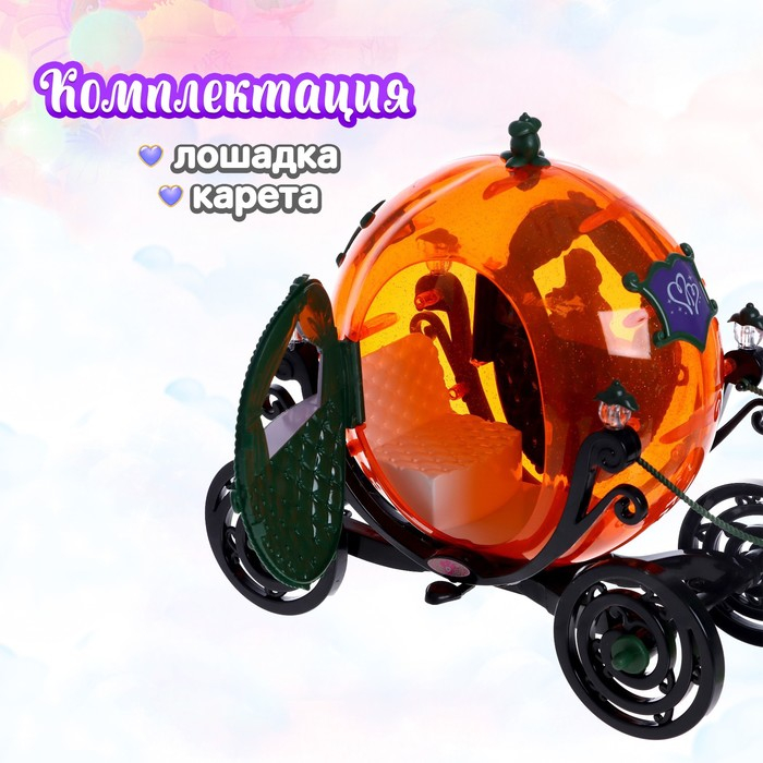 Каждая принцесса заслуживает свою карету! Особенно, если это сказочный набор с запряжённой лошадкой! В таком транспорте можно отправиться на бал или даже в волшебное путешествие.