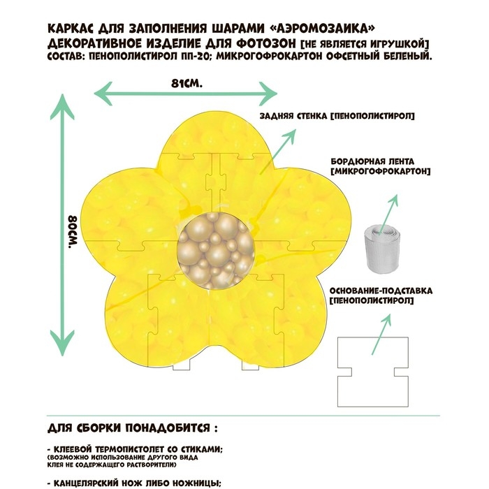 Каркас для аэромозаики фигура «Цветок», белый, 1 шт.