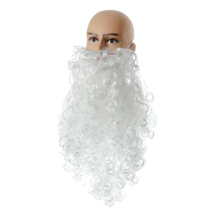 - Борода выполнена из высококачественных материалов. Она густая, имеет длину 50 см и естественный белый цвет, что придает образу максимальную реалистичность