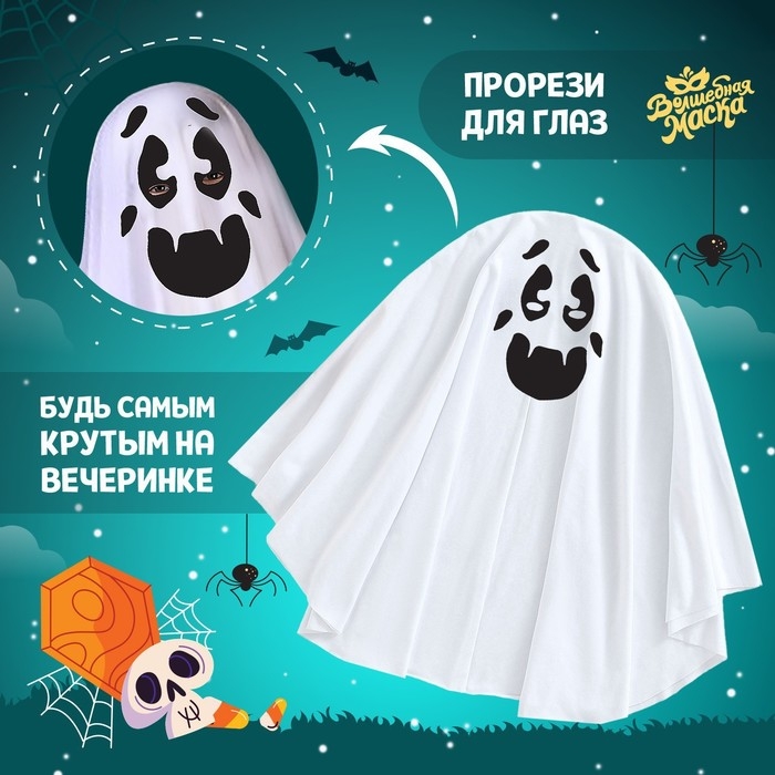 С карнавальной накидкой «Жуткий призрак» вы и ваш ребёнок станете настоящими звёздами на тематических вечеринках и поразите всех гостей! Такая накидка эффектно дополнит ваш костюм. Создавайте яркие эмоции и воспоминания на целый год вперёд!