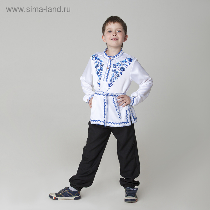 Карнавальная русская рубаха «Синие цветы», атлас, цвет белый, р. 30, рост 110–116 см