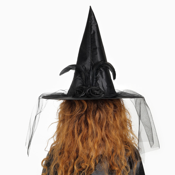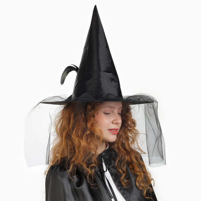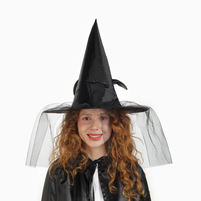 Карнавальная шляпа «Ведьмочка», с фатой, цвет чёрный