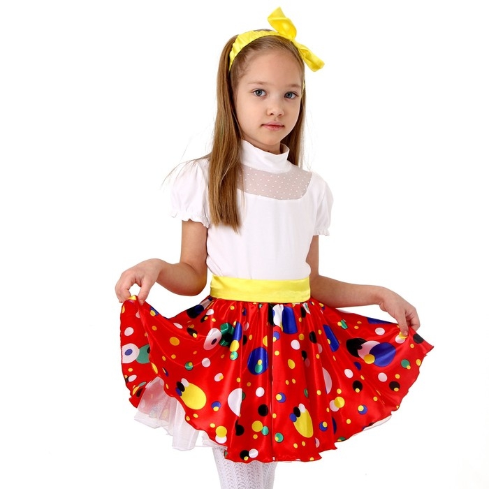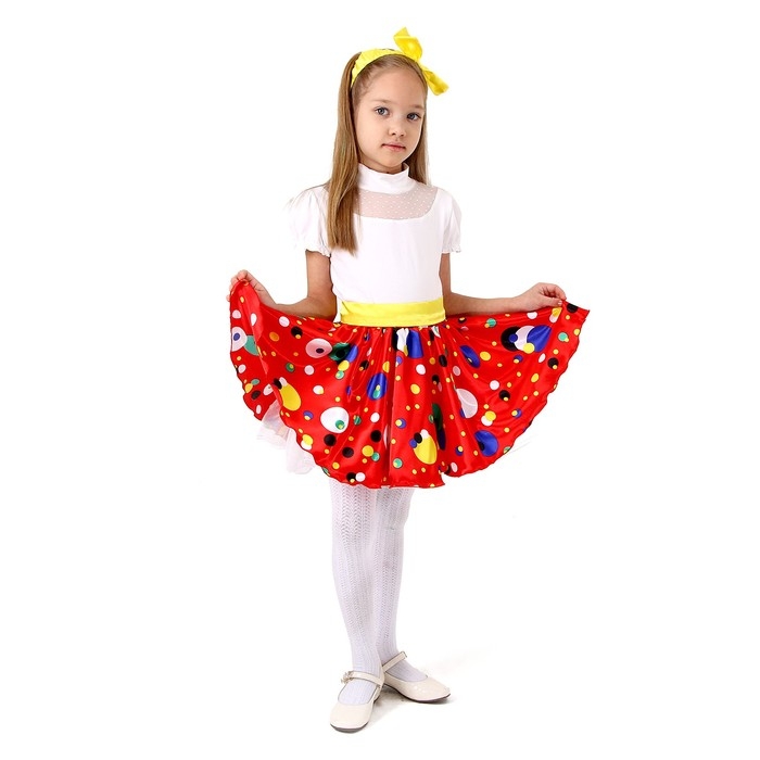 Карнавальная юбка для вечеринки красная в горох, повязка, рост 98-104 см