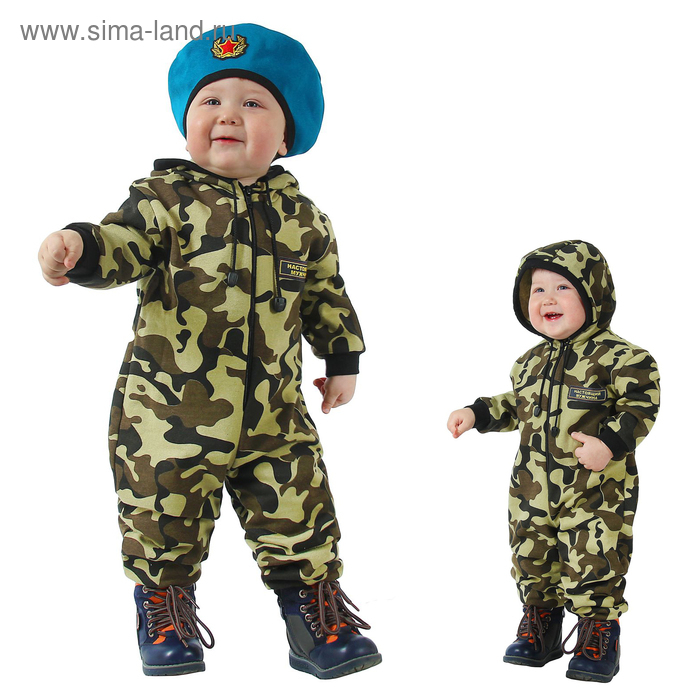 Карнавальный камуфляжный комбинезон с беретом для самых маленьких, трикотаж, рост 92 см