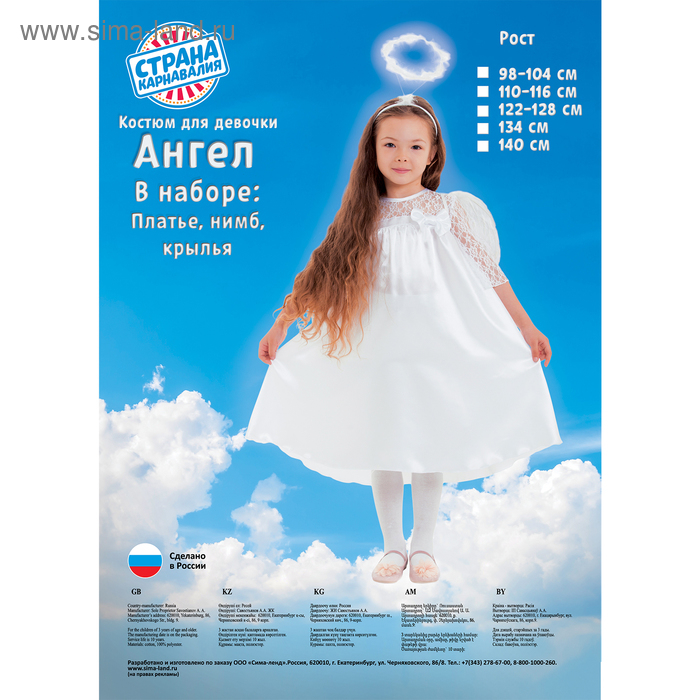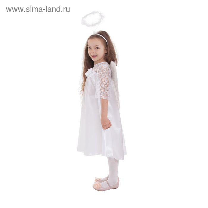 Карнавальный костюм «Ангел», платье, рукав 3/4 гипюр, нимб, крылья, р-р 28, рост 98-104 см