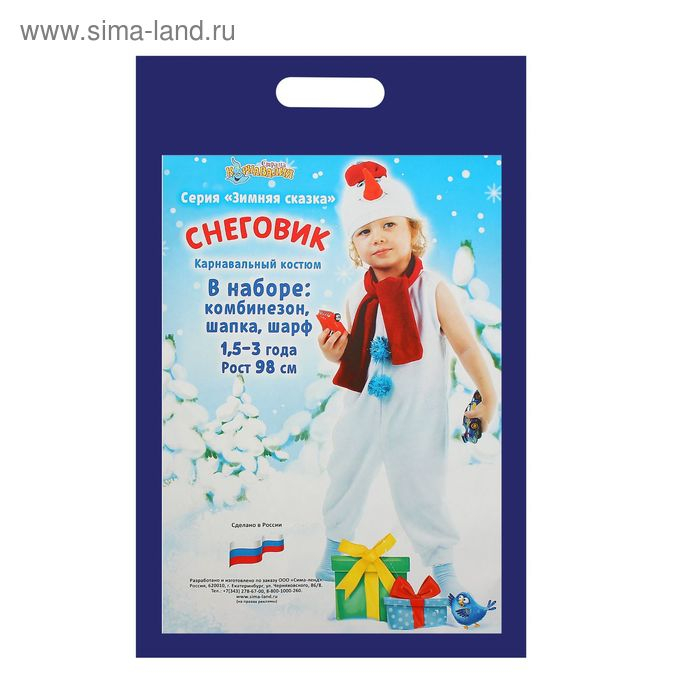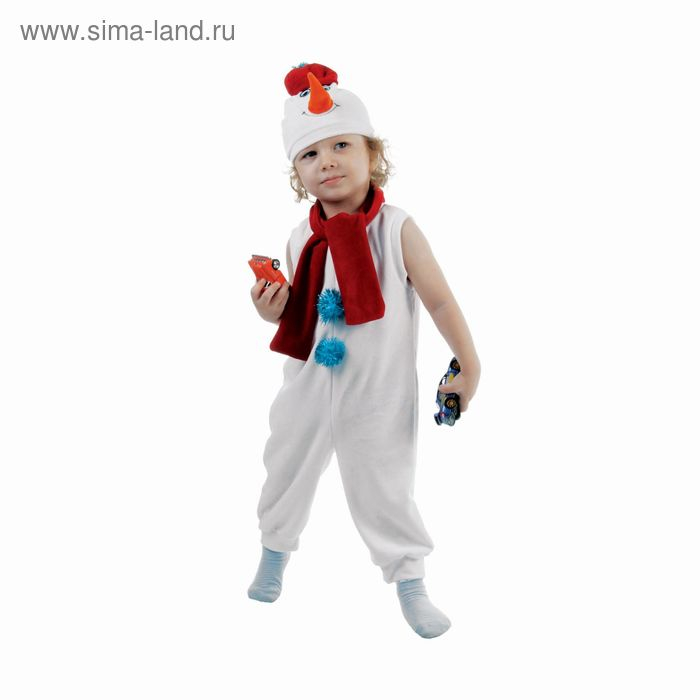 Карнавальный костюм «Белый снеговик», велюр, комбинезон, шарф, шапка, рост 98 см