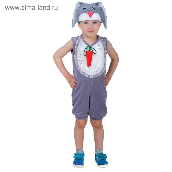 Карнавальный костюм для мальчика «Заяц с грудкой», велюр, комбинезон, шапка, от 1,5-3-х лет