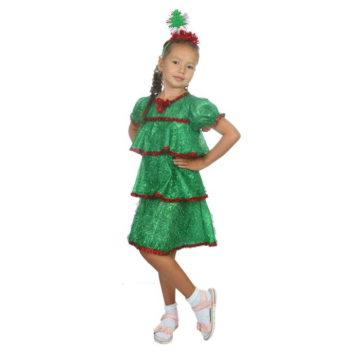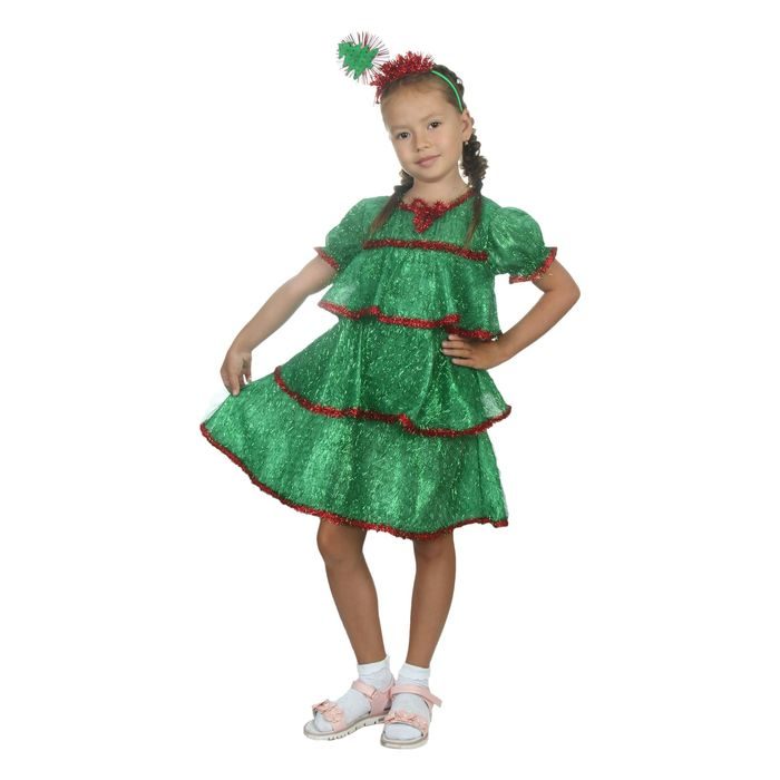 Карнавальный костюм «Ёлочка искристая», кокошник, платье ярусами, р. 32, рост 122-128 см