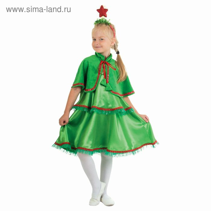 Карнавальный костюм "Ёлочка", сарафан 2-ярусный, пелерина, ободок со звездой, р-р 64, рост 128 см