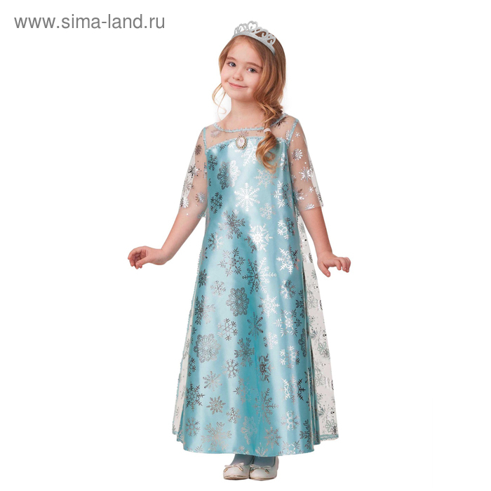 Карнавальный костюм «Эльза», сатин 2, платье, корона, р. 28, рост 110 см