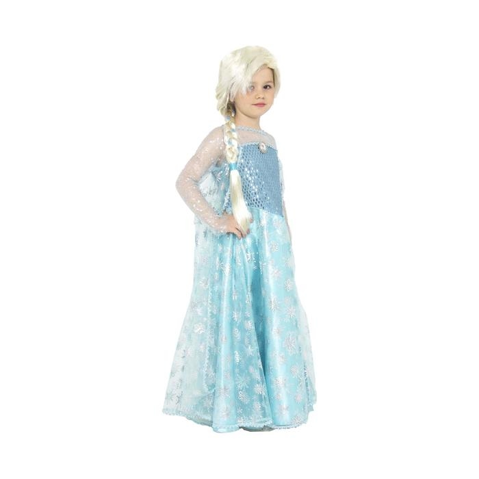 Карнавальный костюм «Эльза» позволит малышке с головой окунуться в сказочный мир популярного мультфильма. Платье в пол небесно-голубого цвета, украшенное серебристыми звёздами, смотрится невероятно нежно и приковывает к себе взгляд. Дополняет комплект светлый парик с косой. Такой изящный образ прекрасно подойдёт для спектаклей, утренников, тематических вечеринок и волшебного бала.