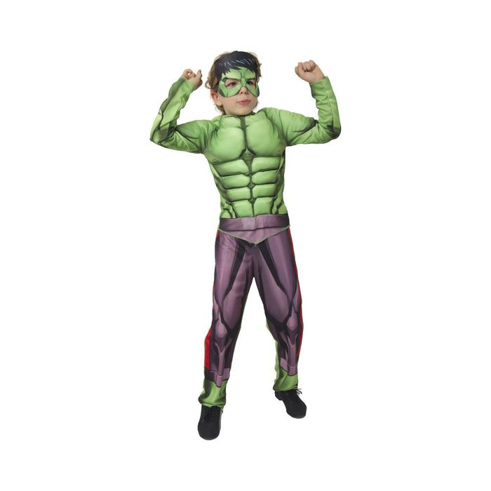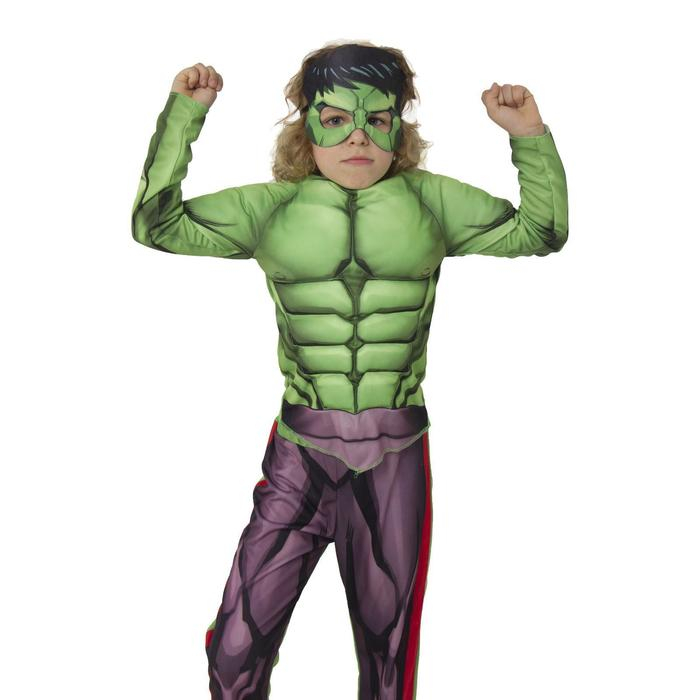 Карнавальный костюм «Халк» с мускулами, текстиль, куртка, брюки, маска, р. 34, рост 134 см