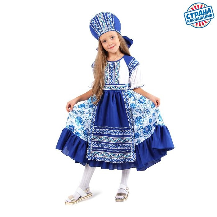Карнавальный костюм «Кадриль синяя», платье, кокошник, р. 32, рост 122-128 см