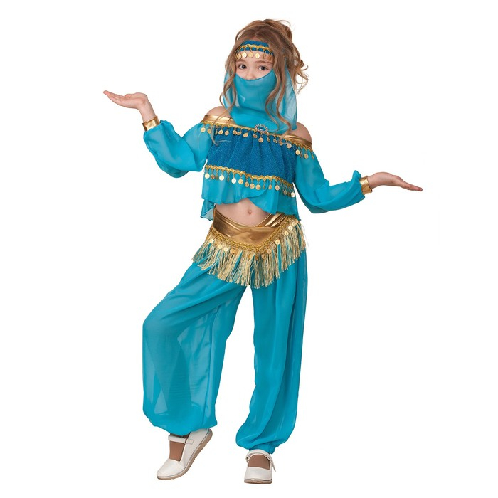 Карнавальный костюм «Принцесса Востока» — отличный выбор для тематических мероприятий и праздников. Костюм был вдохновлён образом принцессы из знаменитого мультфильма. Образ со звенящими элементами поможет девочке выглядеть стильно на любом мероприятии.