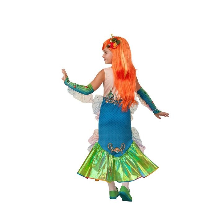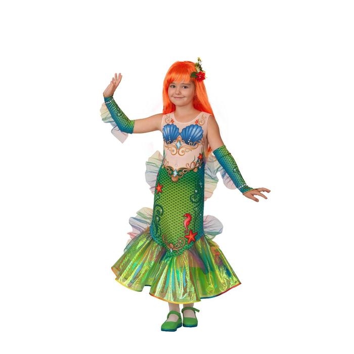 Карнавальный костюм «Русалочка», платье, перчатки-митенки, парик, брошь, р. 34, рост 134 см
